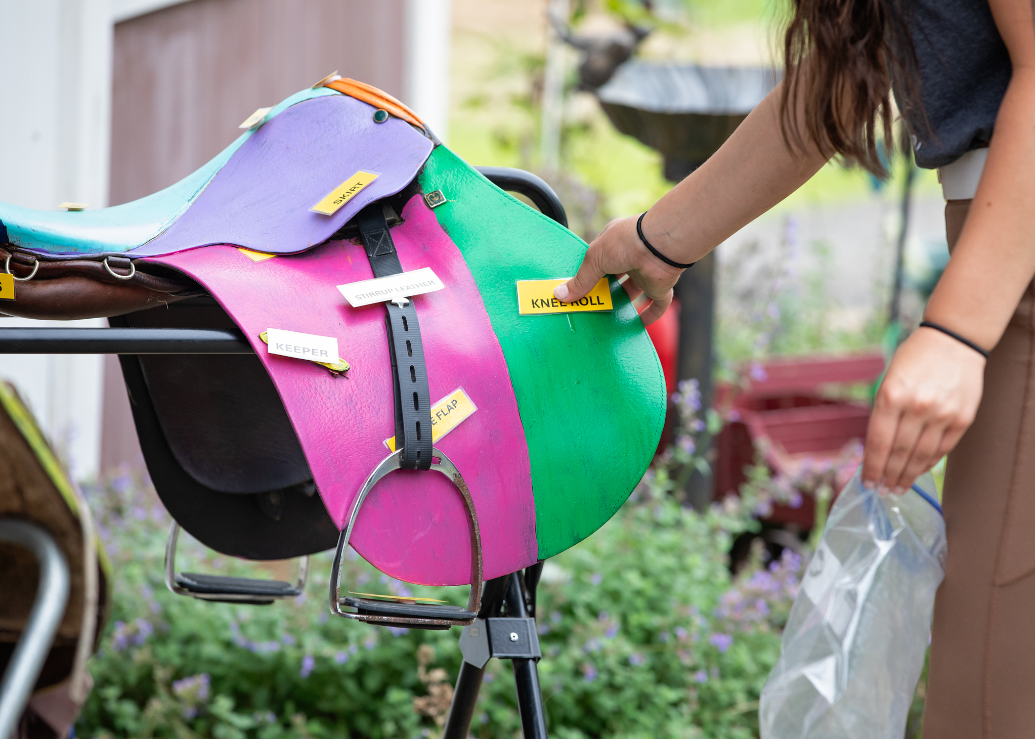 We will split our campers into 3 groups. They will each have a 30 minute riding lesson and then rotate to HORSE CARE: Everything from grooming, parts of the horse & equipment to first aid and veterinary care. and FARM CARE: they will learn how to clean stalls, feed horses maintain a farm and have time to learn about our chickens and goats as well. We have a couple horse/farm related crafts and activities sprinkled throughout the week as well.